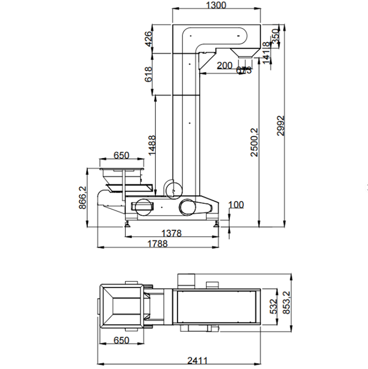 鏈條式Z型輸送機通常配備板鏈或附件鏈條,較高的承載能力和抗沖擊性能。輸送高度范圍可達(dá)2-15米以上,常用鏈條寬度為300–600mm,載重能力可達(dá)2t/h以上,適用于生產(chǎn)線負(fù)荷大、袋體較重或大容量液體袋的液體包裝場景。